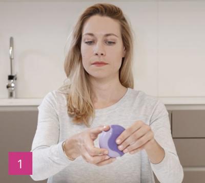 Nehmen Sie das Mundstück in den Mund und umschließen Sie es mit den Lippen. Atmen Sie nun so tief Sie können durch den Mund ein. Beißen Sie dabei nicht auf das Mundstück.