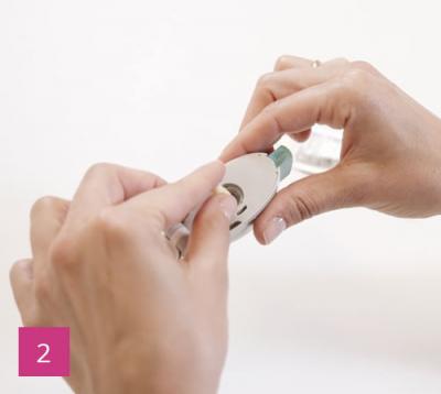 2. Dosis in das Mundstück befördern